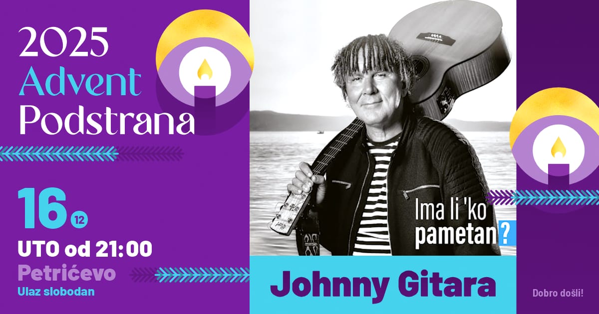U utorak, 16. prosinca, s početkom u 21:00 sat, na lokaciji Petrićevo u sklopu Adventa u Podstrani nastupit će Johnny Gitara, glazbenik s dugogodišnjom karijerom i prepoznatljivim autorskim stilom. Poznat je po kombiniranju dalmatinske šansone, humora i satiričnog pristupa glazbi, što njegove nastupe čini osebujnim i izrazito komunikativnim s publikom.