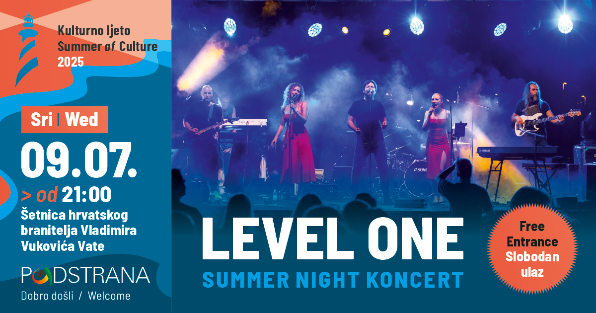? Na pozornicu stiže energični bend LEVEL ONE, poznat po dinamičnim nastupima i odličnim obradama domaćih i stranih hitova. Uz njih, zabava, ples i dobra atmosfera su zagarantirani!