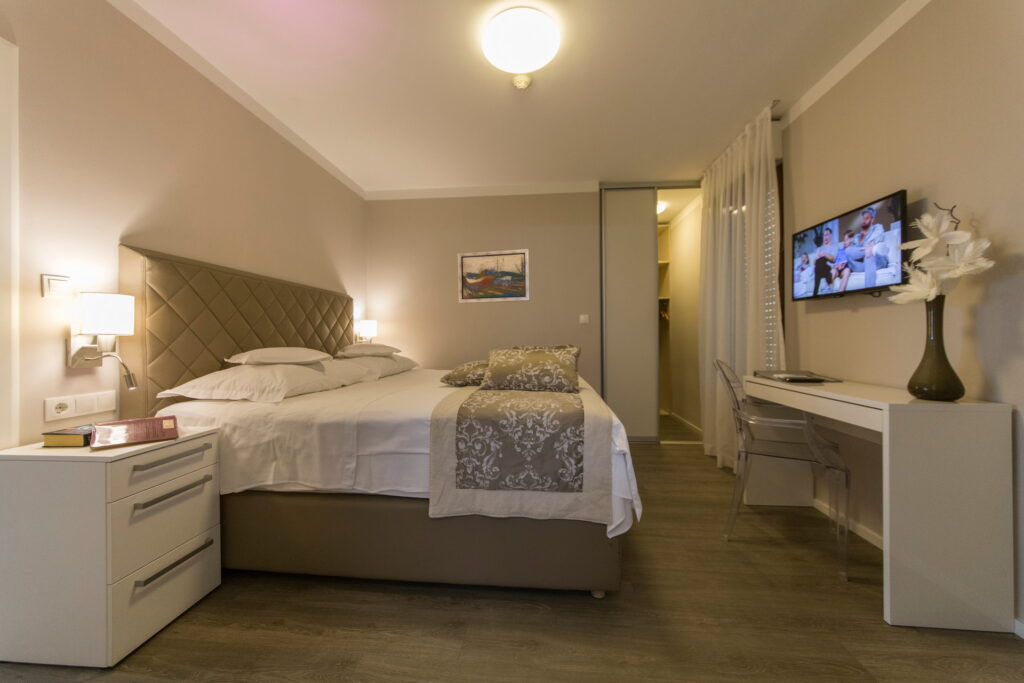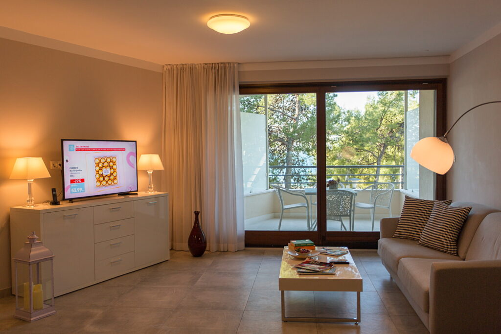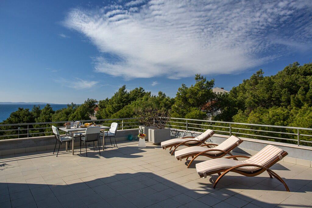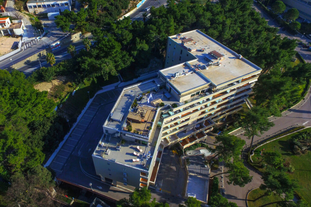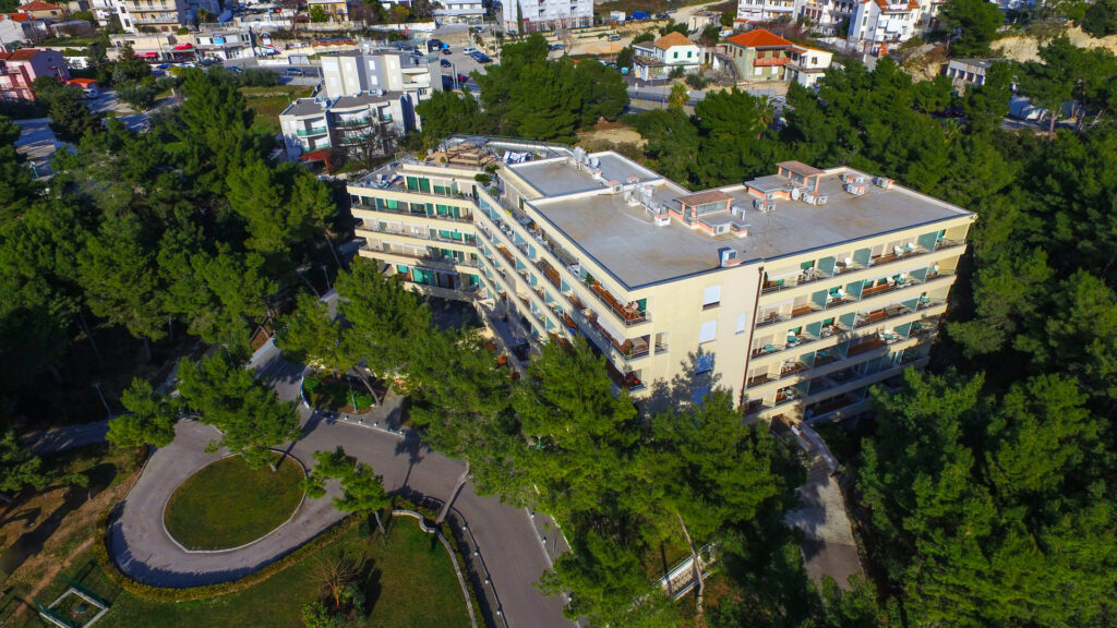 Hotel Residence okružen je slikovitim krajolikom s borovom šumom, a smješten je u Podstrani, samo nekoliko minuta hoda od plaže. Obuhvaća luksuzno opremljene smještajne jedinice s pogledom na vrt ili more
